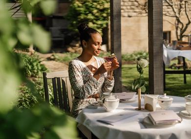 Afternoon tea is served every day in the sunny dining room or on the garden terrace. A vegan afternoon tea is also available.