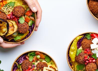 Their family recipe falafel can be enjoyed your way, be it stuffed into a fresh pitta or loaded into a salad bowl, all dressed with our homemade sauces, salads and extras. But there’s more to them than just great food; they’re a movement, championing sustainability in every bite proven through their commitment to preserving a better planet through sustainable packaging and the use of 100% renewable energy sources.
