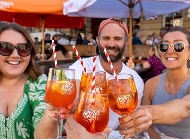 Bottomless Brunches and Sunday Roasts are in high demand over the weekends, so make sure you book, although walk-ups are available. The restaurant's £6 Spritz Happy Hours run every day from 12-5pm, perfect for watching the world go by on the terraces - sunlit through the summertime and cosy and heated through the cooler months.