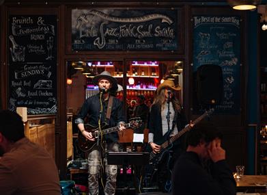 One not to miss. Loved by locals and visitors alike, Green Park Brasserie is a buzzing live music bar and restaurant in Bath city centre, open 7 days a week, and located in a historic former railway station.