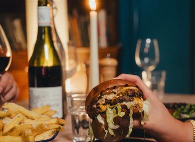 - House Burger (Double Stack) x2 Smashed Somerset Beef Pattys, Monterey Jack Cheese, Lettuce, Tomato, Caramelised Red Onions, Pickle, Garlic Mayo