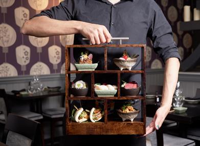Swapping sandwiches for sushi and scones for bao buns, this beautifully presented Afternoon Tea features some of the standout dishes from Robun's menu of yakiniku, sushi and sashimi sharing plates, alongside sweet treats including Miso Cake and Mochi Ice Cream. All served with a selection of traditional Japanese teas and the option of sparkling wine.