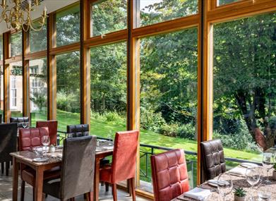 The Conservatory takes full advantage of attractive views out onto the gardens and, during the warmer weather, doors open onto a summer terrace for peaceful alfresco dining.