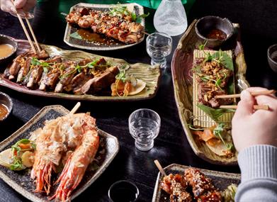 Robun is a celebration of authentic Japanese food and drink, specialising in a modern take on Yakiniku – the art of grilling meat, seafood and vegetables over a traditional charcoal fire.