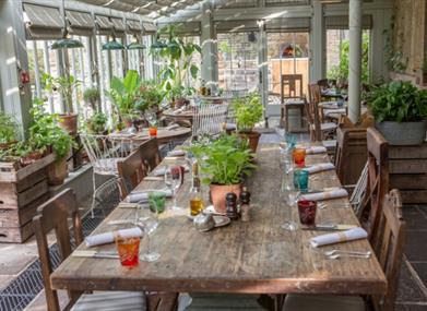 Your meal will be served in an authentically reproduced Victorian greenhouse dining room, complete with bare wood tabletops and mismatched bone handled cutlery.