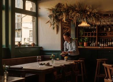 A modern dining pub, flavoured with the character and charm you’d expect of its Georgian surroundings. Inside, the soft glow of the fire, local art, and gentle hum of locals at the bar create a warm, easy atmosphere that invites you to settle in with a perfectly kept pint or a well-chosen glass of wine. In the kitchen, British pub classics are reimagined with seasonal produce and refined technique, resulting in dishes that feel both comforting and contemporary. This passion for great food has seen them hold 2AA rosettes for over 15 years.