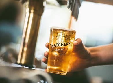 The Thatchers Cider owned pub is beautifully decorated with artefacts and photos that depict the pub’s cider-making heritage. Treat yourself to a delicious meal in the restaurant, have a snack in the cosy bar, or simply enjoy a pint of cider.