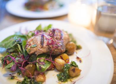Simple fresh food is prepared on the premises daily using the best West Country produce. The menu changes constantly to make the most of the fresh catch, the new season’s crop or an exciting new local speciality, and Timbrell's Yard are proud to showcase local producers, whether that's dry-aged beef and game from Buxton’s in Bristol or vegetables from the Paget family at Stills Farm in Bromham, Wiltshire. They also bake all bread, burger buns, cakes and biscuits, including gluten-free options, daily on the premises.