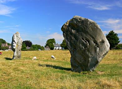 The henge consists of a huge bank and ditch approximately 1.3km in circumference. The stone circle is part of a much larger prehistoric landscape and includes a Neolithic causewayed enclosure, the remains of a timber circle, the largest manmade mound in Europe and many round barrows.