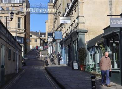 Bartlett Street is a picturesque pedestrian street in Georgian Bath’s main shopping district.