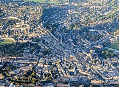 See the graceful arcs of the Royal Crescent and The Circus, then look down to the Abbey and Roman Baths at the city’s heart. The River Avon glints as it slides beneath Pulteney Bridge, while the Kennet & Avon Canal threads east with narrowboats and towpaths. Your pilot turns the basket for views of Solsbury Hill, Prior Park, Lansdown and the soft hills nudging towards the Cotswolds and Mendips.