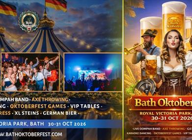 Get ready for 2 huge days of beer, Bavarian food, live music, and festive fun as Bath Oktoberfest returns to Royal Victoria Park from 30 - 31 October 2026.