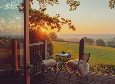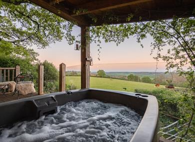 - Private deck with luxurious hot tub overlooking farmland, woodland & distant hills